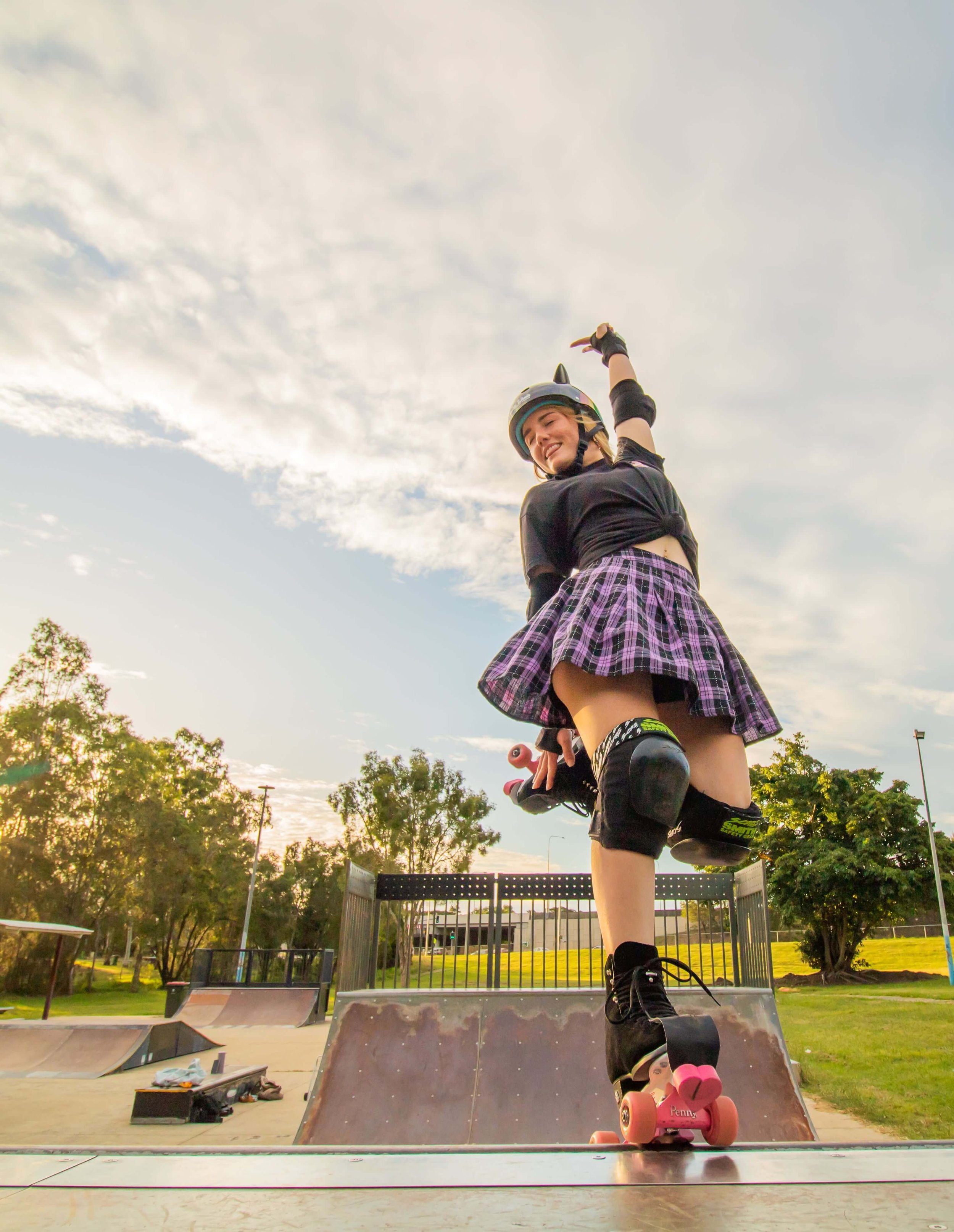 There’s honestly no greater feeling than doing your very first drop-in. The shaking in your knees and your heart thumping in your chest. You’re holding your coaches’ hand tightly as we count down, ‘3-2-1...’ You step your skate forward and experience the rush of flying down the ramp, looking over your shoulder and screaming, ‘I DID IT!’